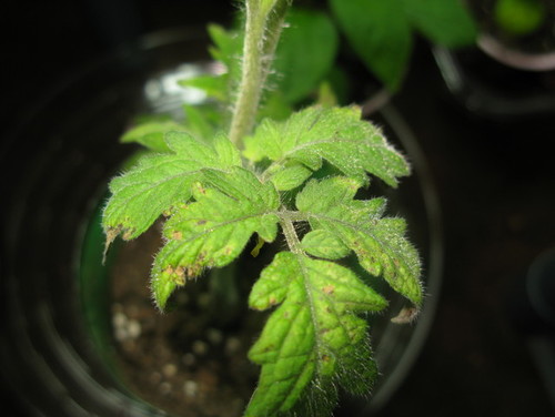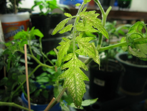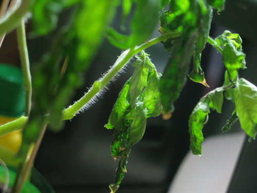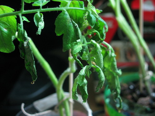 Late Blight: a very bad to fatal fungal disease caused by spores which may travel on the wind for miles. Usually affects leaves first, and later the rest of the plant. Different strains affect plants with different degrees of severity; the most extreme turns an entire vine to a dark, rotting mess in 24-48 hours. Affected plant tissue must be bagged and destroyed to prevent further release of spores. Late Blight can occur during any season, but is often seen late in the year when cooler weather slows evaporation of dampness conducive to fungal growth.
