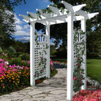 It is a nice trellis, but did you anchor it in the ground as well as use bases? With just the bases, I don't see how it could not fall over away from the wall once the weight of the tomatoes are on it.