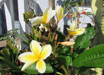 Plumeria- good low water shrub or potted plant