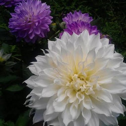 The purple one is called Sky Angel. It was the first to bloom and there are TONS of flowers on each plant. I got the tubers from Lowes, so 3 for $9.99. t I will say they should've been separated (or whatever the correct term for splitting them up) but I didn't know how to go about that, it being my first year.