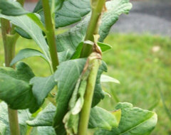 Mouse droppings, you say? I think the culprit is most likely those cute hopping menaces, the grasshopper. They are out in force this week, I noticed, and I am constantly snagging them up off blooms and stomping on them. Japanese beetles leave droppings, too, but they are smaller, and those beetles are finally starting to go away in my neck of the woods.