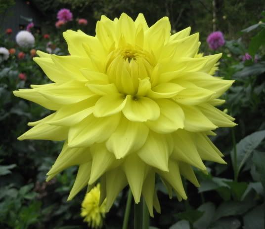 | Thanks for posting Mel's Yellow Delight. Even with bugs and rain it's still pretty. Since it's Sept now, our frost will come any day in MN so my blooming season's pretty much done. I CANNOT wait to grow my first laciniated dahlias next may!! |