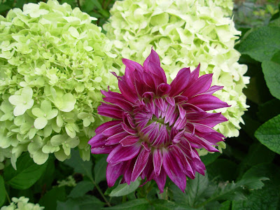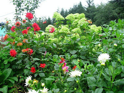 | Oh yes, Bullwinkle's! That sounds familiar too. I'm almost afraid to do a search for Mangy Moose anything ;) But I know I was there or familiar with a place of that name. Maybe it was in Yukon Territory? How is it that you can get hydrangea- a shade lover, and dahlias, sun lovers blooming in the same bed? Is it the extended daylight that makes it possible? |