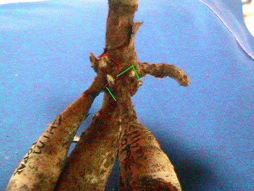I dust on some fungicide to the cut, and some rooting hormone, and prepare to pot.