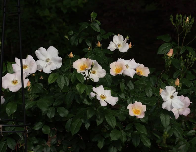 | I love your Dainty Bess. I have tried her twice with no luck. She is a beautiful rose and your photo is lovely. I have Sally and love her. Lots of pruning to keep her in bounds, tho. Thanks for sharing your roses with us. Lesley |