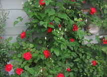 I want to pair Papa Meilland with one other red rose along the side of my garage. The bed is 3 to 4 feet wide. I presently have Alec's Red located there, but have recently read it might get too wide for the bed. Would the bush...