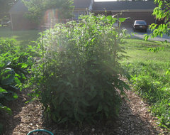And yes, good idea at the time was to plant beans up the north side as a trellis... note to self... unless a little shading is beneficial under the summer sun, not as good idea as I thought lol. The beans, although planted after, easily outgrew the maters.