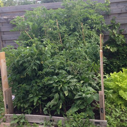 For future reference: Don't put 12 tomato plants in a tiny (1.5 square meter) spot (who knew they would grow like this?!)