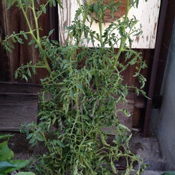 The patio tomato wound up getting stripped of all it's leaves and then I killed it and made fried green tomatoes with whatever I couldn't get to ripen. I have been able to keep the EB in check on the other plants by picking the diseased leaves off as soon as I see any evidence, and I spray the whole plants down with copper spray until dripping. I have also brought out a fan onto the balcony to increase circulation, which seems to help.