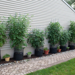 Welcome to the forum and to container gardening. There are many of us who container garden, myself included. It's another way to garden and has it's own challenges. I've switched from containers to smart pots which are fabric and really like them. If you go to the container forum you will learn a great deal about container mix, Al's 5-1-1 mix which many of us use with great results. Container Soils - Water Movement and Retention XX is the heading. Good luck and keep us posted. Are you able to put those buckets on something to elevate them a bit off the hot concrete? Also, fertilizing frequently but in weaker concentration is important with growing in containers.