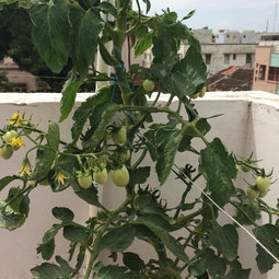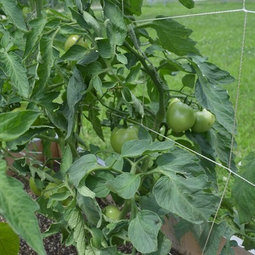 No time today, but I will post pix on the picture thread this weekend. They're growing very thick stems, lots of leaves (had to take some lower leaves off when weaving yesterday). Took flowers off a few that had them (1 Gardner's Delight I planted yesterday actually had a small fruit).