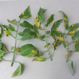 You can Google pics of 'phosphorous deficiency in tomato plants' for pics to compare if you wish.