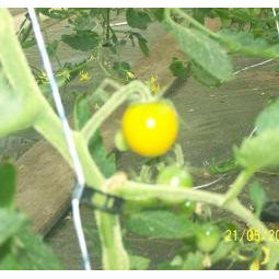 Its a Yellow Mini. So far only that variety, Sweet Baby Girl and Black Cherry have started showing color. Last year the SunSugar plants started producing first, about 2 weeks before now. They are just taking their good old time this year and the more I watch them the slower they ripen.