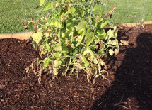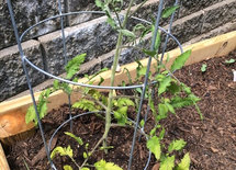 Another possibility is to grow tomatoes on a trellis which is not vertical but slanted or horizontal. I've seen photos of this done with CRW (concrete reinforcement wire) or cattle panels (aka hog panels, stock panels), but if that's not an option, you can use fence wire with smaller holes. If you're growing tomatoes this way, you'll need to weave the vines into the mesh every few days to keep them from going vertical. [You can also use a trellis for pole beans, cucumbers, etc.]
