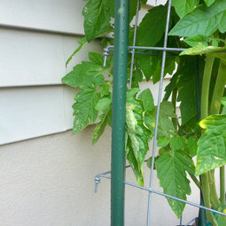 What is your pot? How do you have them staked? Looks like square wire fencing with twine around the stakes as it grows up??