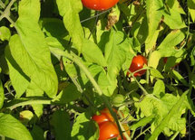 Yellow Leaves - Water-stressed tomato leaves are wilted but still green.