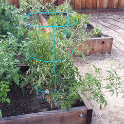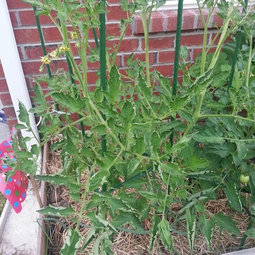 weird- I posted a reply and it did not show up. I trimmed off the end rotted tomatoes, and I added a little more fertilzer, this time with a fertilizer more geared towards tomatoes and claims to reduce blossom end rot. I probably added two table spoons to each plant close the base and mixed it in to the soil a little. I was limited in what I could do without taking the trashbag cover off the soil. In brighter news I noticed a fruit on the taller plant finally! See attached picture and video link