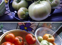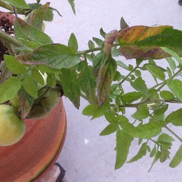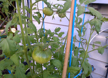 So here's the same plant 10 days later. Honestly, does it look that bad? I'm still getting an occasional funky spot on a leaf or two but the tomatoes are starting to ripen with smooth skins and they taste great.
