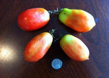 Thanks for all the feedback. If it's not really a Black Cherry I guess that would explain the elongation. And it was a Bonnie. It's not very tasty, and has a thick skin. Anyway, here's a shot for scale: