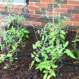 So I end up sometimes bringing them in the house on freezing cold nights while I wait for the right time to plant. This year has been particularly harder to find the perfect time to plant out. I ended up putting two plants in the ground a week and a half ago and they rode out a couple of nights in the low 40s. Then I put the rest in just as we were going into a heat wave. So far all of them look like they are doing fine. Not ideal, but tomatoes do love heat.