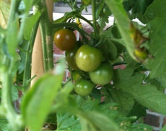 Thank you. I'm looking forward to them. Actually, now that I count again, there are more like two dozen out there. But the plants are just enormous. These are my only indeterminate small tomatoes this year, so I'm hoping for the best. I've had one-and a-half inch green ones out there for a couple of weeks. They're taking their good time ripening.