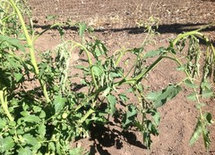 So, here's a picture of that tomato now. I dug it up, looked it over, didn't see a problem, and stuck it in a bucket. It's doing great!