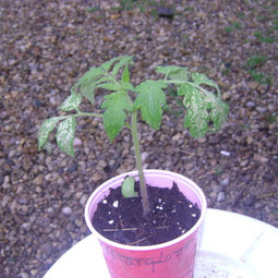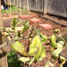 Maybe could be sunburn since the roof isn't all there but the problem seemed to start after that cold night. They almost drowned from the last rain. I think all that water probably took away all the nutrients out of the pot. My poor tomatoes are having a rough start this year.