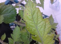 Maybe could be sunburn since the roof isn't all there but the problem seemed to start after that cold night. They almost drowned from the last rain. I think all that water probably took away all the nutrients out of the pot. My poor tomatoes are having a rough start this year.