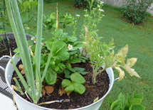 Six weeks from planting out, July 1, 2012 (Mortgage Lifter in forefront):
