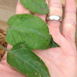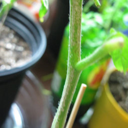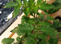 Forgive my lack of describing properly the structure of tomato leaves in the previous post. What I meant by "middle leaf" is the end leaflet in a cluster of five or nine leaflets on a leaf.