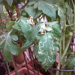 leaf miner, a tiny moth that lays its eggs on the leaf and the worm burrows inside the leaf creating those "s" patterns. regular horticultural oil or soap is not effective since the worn is protected inside the leaf. if you are not oppose to incesticides, look up spinosad.