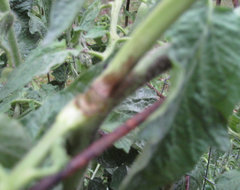 So I could use some enlightenment on this subject. My tomato plants are almost 2 month old not seedlings. I have I abused them? After they popped all the bloom everywhere and small tomatoes appeared, I added Kool Bloom (2-45-28) to them...soil, and foliar feed them with Sea Magic mix fish emulsion. Now a day later find the dark coloring on my stems, mainly where the small stems come off the main stalk, and the small stems are splitting at the joint of the main stalk.I'm not a very experienced grower,but I don't think the splitting is from poor support and the color looks alot like the mixture of seaweed and fish emulsion...anyone give me some insight. I guess time will tell. If they all die I will be so disappointed, I have really over babied them,need to just be patient.I planted these kinda late May 25th so looking forward to tasty tomatoes.I have more I planted the middle of June that don't have this condition,so I think I'll just leave them alone and stick to water!