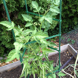 Some of the things I've learned about growing roses up here are transferable to growing other plants. When I first planted the tomatoes, they did look wilted. I knew the root system wasn't working yet and carrying moisture up to the top growth, so I did shade the plants by hanging a sheet over the fence and across the tomato cages. I do the same thing when I transplant a rose in triple digit temps....no, you aren't supposed to do that, but I can make it work ... Within a day, the wilting had passed. Whew !