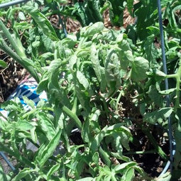 And I agree they show definite signs of tomato leaf roll which is caused by inconsistent soil moisture/watering (one extreme to another), not over-watering.