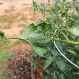 (The virus has a very wide host range from which it can be transmitted in a persistent manner by thrips.Although the virus is acquired at the larval stage it is only spread by the adults which are wind-borne to tomatoes from infected weeds or ornamental plants. Usually there is very little spread WITHIN a tomato crop.)