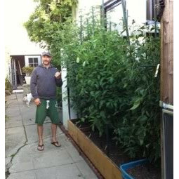 Aha!!! SneakyP, you bring up a good question...one that I've been grappling with. I think what I will end up doing is allowing the plants to get as high as the house (just above the edge of the photo), which has a flat roof. I will rig a support system, probably of twine, that attaches to the roof ridge and ties off at the bottom, probably every 12-18". Anything above that will be topped off...I think. I've never had this problem before, so I'll have to keep ya posted. LOL.