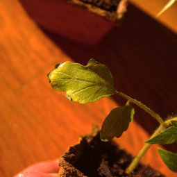 We have an electric dryer and small electric space heater in the area. The plants are on a shelf 1 1/2 foot above the laundry appliances. Also, since it's just my husband and I, we don't run the dryer very often. I just noticed too that the only the Italian tomatoes have edema while the leaf curl is only on the Romas. I thought tomatoes are supposed to be easy! LOL. My other seedlings (peppers and watermelons) are thriving so I hope the decreased temperatures won't negatively affect them. ::