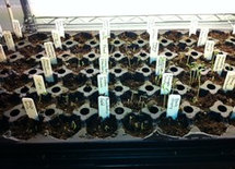After a few days, I moved these growing seedlings outside, on the theory that they should benefit from sunlight before their "batteries" ran out. Given the various forms of abuse they suffered, from root shock to desert-like scorching sunlight, half of them perished. But half of these seedlings are roaring. So I will attempt a winter crop, here in so. Cal... in a place there the plants get several hours of sunshine, every day... beneath an eave.