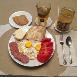 Usually my breakfast consist of cup of coffee (sometimes with milk) but without any sugar. Also, for example, today I ate oatmeal with fruits. I like it because it keeps me feeling fuller longer.