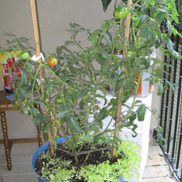 Today I visited my local community garden. The tom plants are not doing so great. The lower leaves (about 2' and lower) fell and the tomatos are very small. But the cherry tomatos are still going wild, but with even smaller fruits.