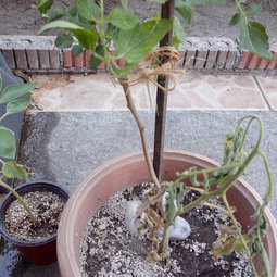 Also, I would be more worried about the limp stem of the tomato in the bigger pot.