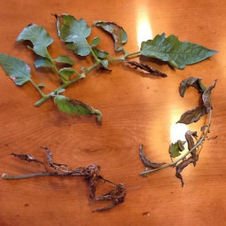 Thanks all. Lycopenequest, I spray in the early morning before the sun hits the plants. It isn't chemical drift from nearby, I lost almost all my tomatoes one year from herbicide damage, so know what that looks like. I am beginning to think Linda is right and this is Grey Mold. This plant sits in the back of the garden so gets much less wind and airflow than the other plants. I am getting a touch of it on the other plants, but I am able for some reason to contain it on those. The dwarf with the very dense foliage started out with white spots and then got the brown areas with visible fuzzy growth. But the end result of the leaves looks identical. So I think it must be grey mold and probably this plant suffered more as it was at the back of my garden. Thanks all,