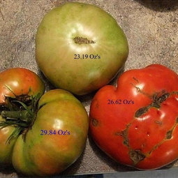 I got a late start on planting my own Steakhouse 7 inch starts from seed on 5-16-14. The pic below shows the first and biggest sample. I am 6 ft tall and the steakhouse tomato plant is 7 ft at the time of this pic and about 8 ft now (8-27-14) and still growing. The tomato is 1.5 lbs, and the succeeding ones are about 1 lb each. I do not pinch suckers, and grow them in wire cages, in Tennessee. My 10 ft corn is in the background.