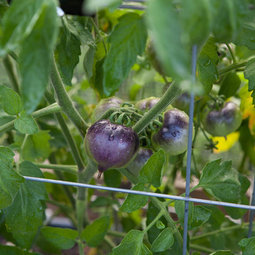 I have to say they are a very stunning color this morning, I've never seen anything quite like it. I just wish they were a tiny bit larger though. They are now deep purple throughout except for a touch of green on the bottom. All of them still feel a bit firm though. The problem is that I can't determine whether or not to pick them and allow them to ripen indoors. For red tomatoes I usually pick them when they start to blush to avoid splitting, pests, etc.